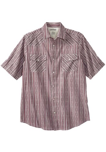 Fabric: Cotton/Polyester. Care: Machine wash. Origin: Imported. Woven cotton/polyester Short-sleeve All-over print Snap front center placket Western style front yoke Snap-flap chest pockets Shirttail hem Tagless label Big and Tall Mens Sport Shirts - Snap Front Printed Sport Shirt. Big: XL - 8XL; length - about 34" Tall: L - 6XL; length - about 36"