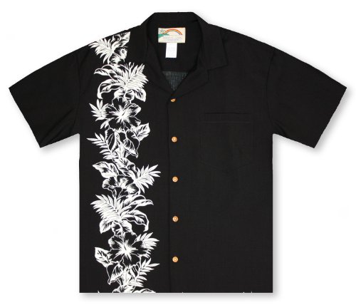 ## Paradise Found Hibiscus Panel - Cream On Black Tropical Hawaiian Aloha Shirt, Small