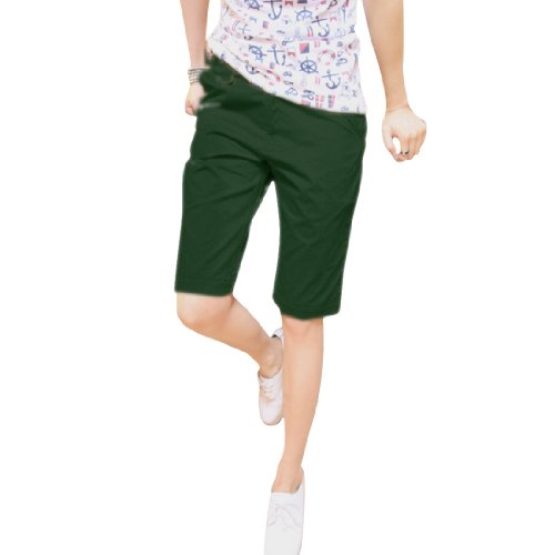 Allegra K Mens Trendy Casual Front Slant Pockets Straight Short Trousers Deep Green W30